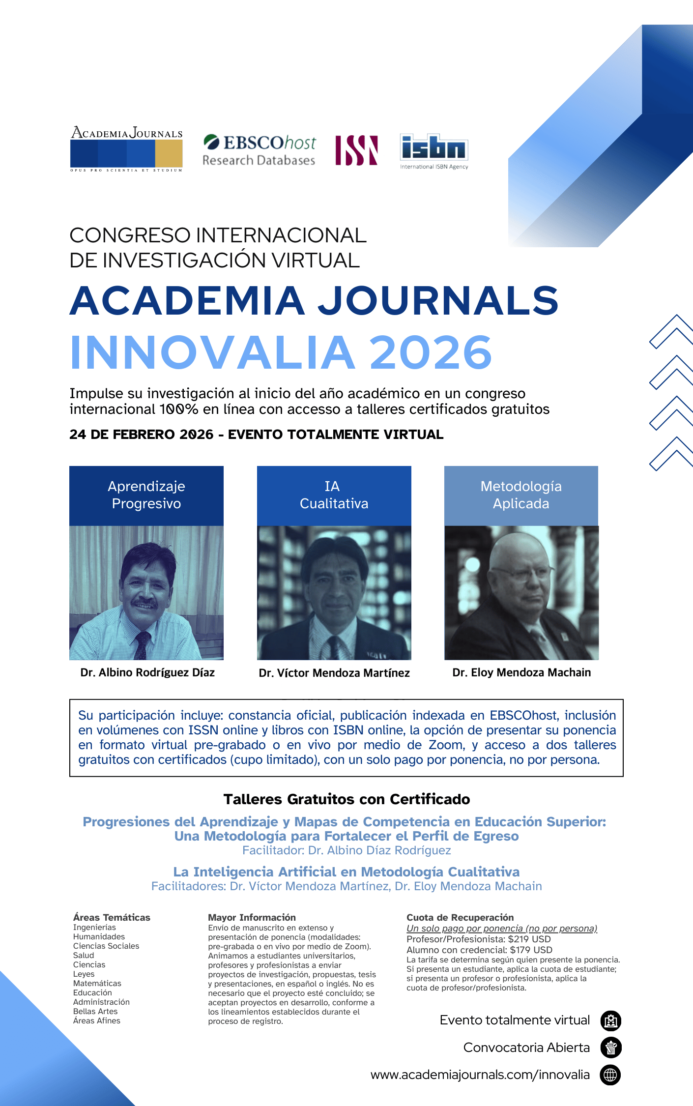 Sea parte del primer congreso del año, “Academia Journals Innovalia 2026”. Obtenga acceso prioritario al registro y participe en 2 talleres opcionales gratuitos con certificado. Evento totalmente virtual. Registro abierto.